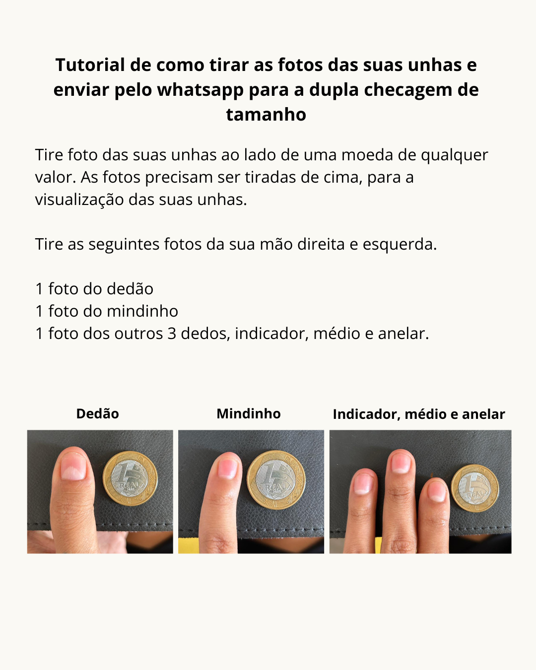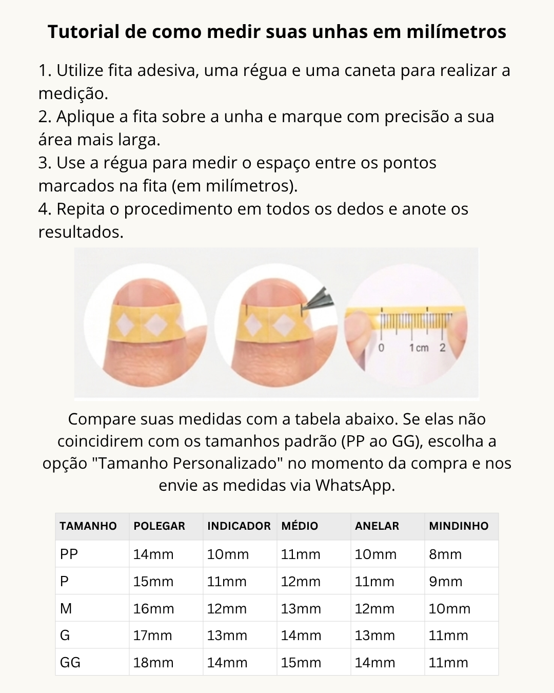 1º passo: Após a compra, entramos em contato para ajudar você a medir suas unhas naturais.